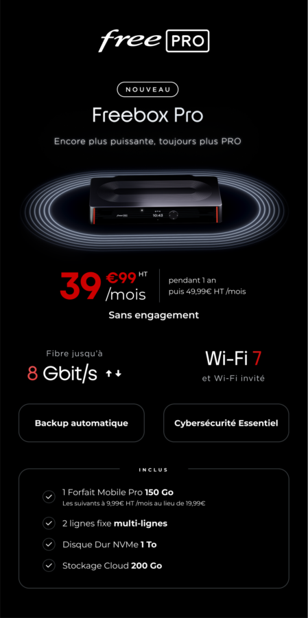 FREEBOX PRO 39.99 € HT /mois pendant 1 an